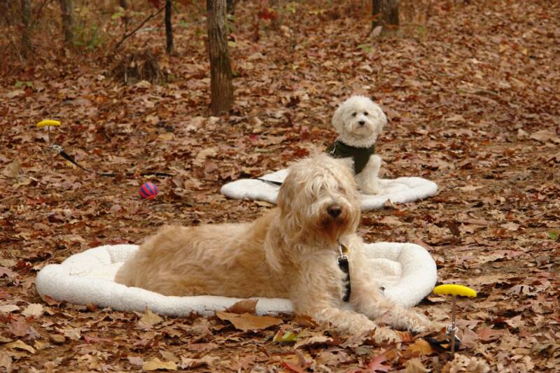 Bella the Labradoodle and her best friend lab