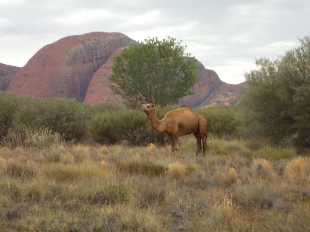We saw this wild camel standing by the side of the road on our way to the Olgas